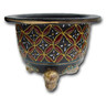 This style of pottery is called 'Raku' and has an unglazed finish. It is made out of very thin clay in order to let air breath through and prevent condensation. Fuuran (Neofinetia falcata) enjoy good air movement, making this the perfect pot to grow them in. This style of pot has been used since the 1600's in Japan.