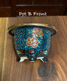 Pot B - Has a 2.75 inch inside diameter. Has red peony flowers surrounded by floral motif.