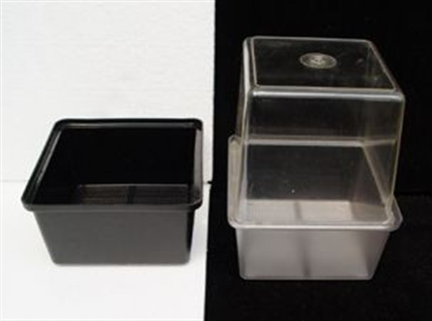 These 4.5" x 4.5" x 4" high domes fit both the black and clear compot trays. To order the compot trays, click here.