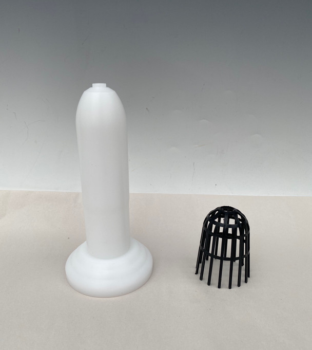 Yes, we know, this design is rather 'unique' in its looks. There are many ways to mound Neofinetia, often with a bottle or pole to help form the air pocket under the plant. Here we have a pole made in Korea that has optional net baskets to place on top to prevent collapsing of the sphagnum moss in the center. With the net pot, this moss mound will fit exactly in a K35 Plastic Neofinetia pot, or a 3.5" pot opening in general. Without the net pot, and with a minimal amount of moss, you can still fit into a 3" opening (like the K30 pot), but in general this size works best for 3.5" pots, and up to 4" if you use more moss. The pole can pivot so you can turn and add more moss as you create the mound.