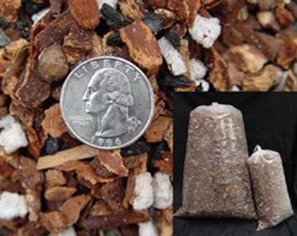 Our small mix is made of clean sterilized Rexius brand douglas fir bark which has been presoaked for 24 hours and then blended with charcoal and sponge rock. This is ideal for seedlings to moisture loving orchids. If the mix is not used within 3 weeks of arrival pour into a box and let it dry out. Re-soak before using again.